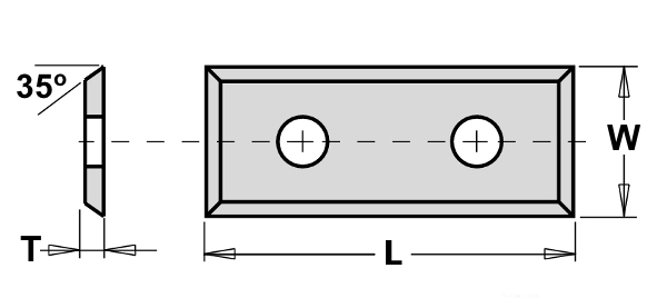 Нож сменный Tigra 4-ре режущие кромки 39,5*12*1,5 a=35°, Z4 с четырьмя режущими гранями, сплав T04F дсп,мдф, массив - используются для фрез со сменными ножами.
