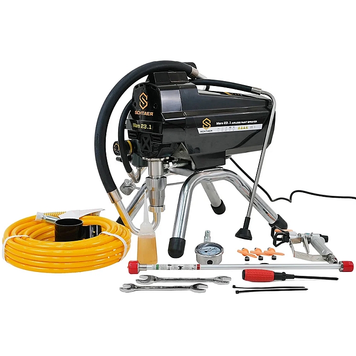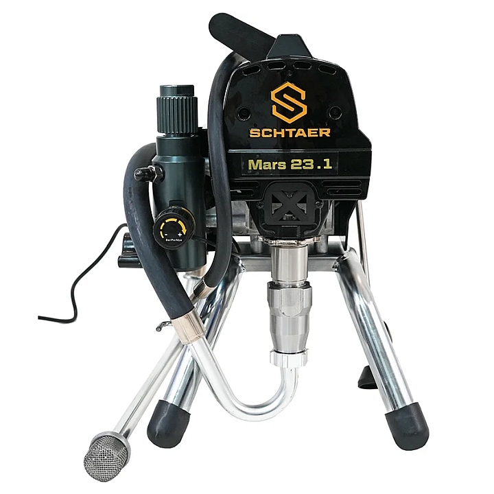 Окрасочный аппарат SCHTAER Mars23.1 2.0 л пердназначен для распыления красок, эмалей, грунтов, морилок на различные поверхности. Подходит для небольших объемов работ: окраски стен, потолков, фасадов малоэтажных домов. Работает с любыми строительными красками, предназначенными для распыления через безвоздушные краскопульты, совместим с соплами разного диаметра, что позволяет менять скорость распыления и толщину наносимого слоя.