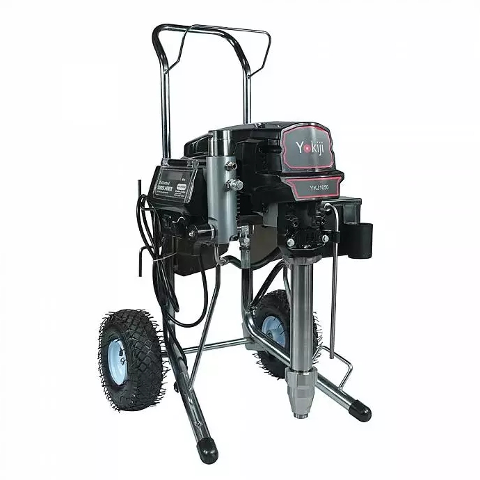 Окрасочный аппарат YOKIJI YKJ1060 представляет собой окрасочный аппарат для вязких материалов. Это поршневая машина для безвоздушной окраски, способная работать с лакокрасочными материалами средней и высокой вязкости. Предназначена для нанесения финишных готовых распыляемых шпатлевок, эмалей и грунтовок, для антикоррозионных красок по металлу. А также для работы с акриловыми и латексными красками для стен, фасадов и потолков, красок по дереву и другими вязкими лакокрасочными материалами.