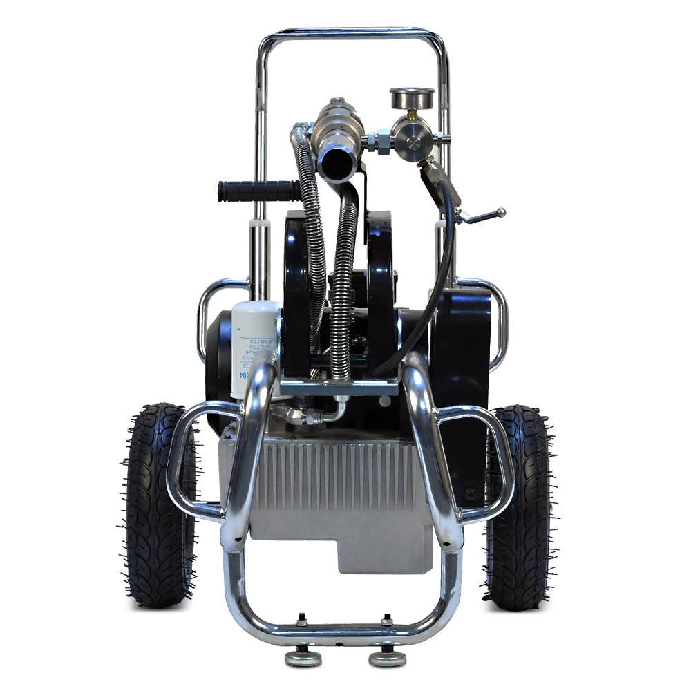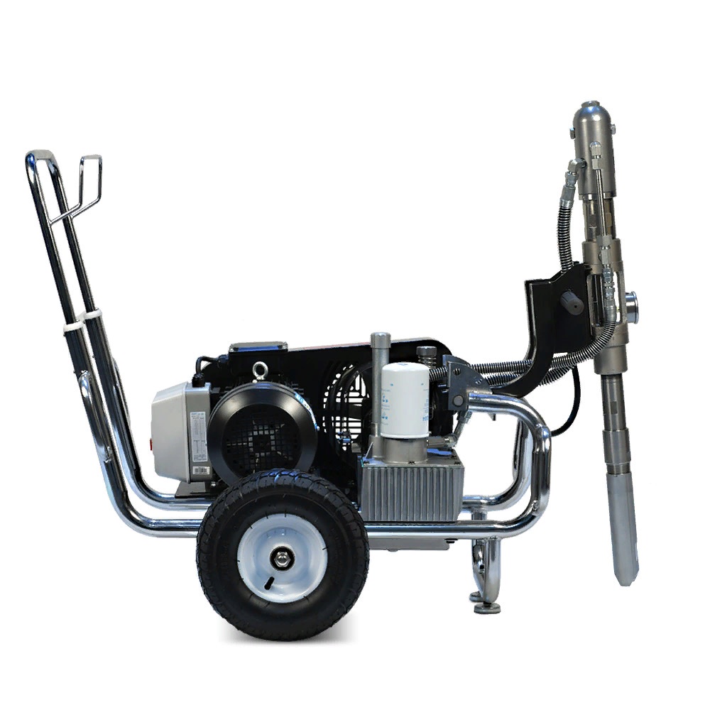 Окрасочный аппарат Yokiji YKJ980 электрический 380V 50 HZ - используется для распыления материалов с высокой, средней и низкой вязкости: красок, эмалей, шпаклевок, огнезащитных, гидроизоляционных, антикоррозийных и цинконаполненных составов, мастик, грунтовок и других лакокрасочных материалов, предназначенных для нанесения через поршневой безвоздушный окрасочный аппарат. Аппарат используется на стройплощадка при отделке помещений, зданий и сооружений, а также на производствах при покраске больших конструкций. Мощность аппарата позволяет подавать краски и другие рабочие составы на высоту до 120 метров, за счет чего его особенно практично использовать при строительстве многоэтажных домов. Оборудование позволяет одновременно подключить для качественной и стабильной работы 3 малярных поста. Простота и надежность гидропоршневого насоса обеспечивает долговечность.