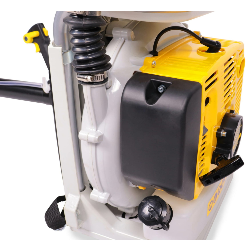 - Опрыскиватель-распылитель оснащен двигателем мощностью 2.6 кВт и предназначен для обработки садовых насаждений, защиты растений от вредителей и распыления удобрений.