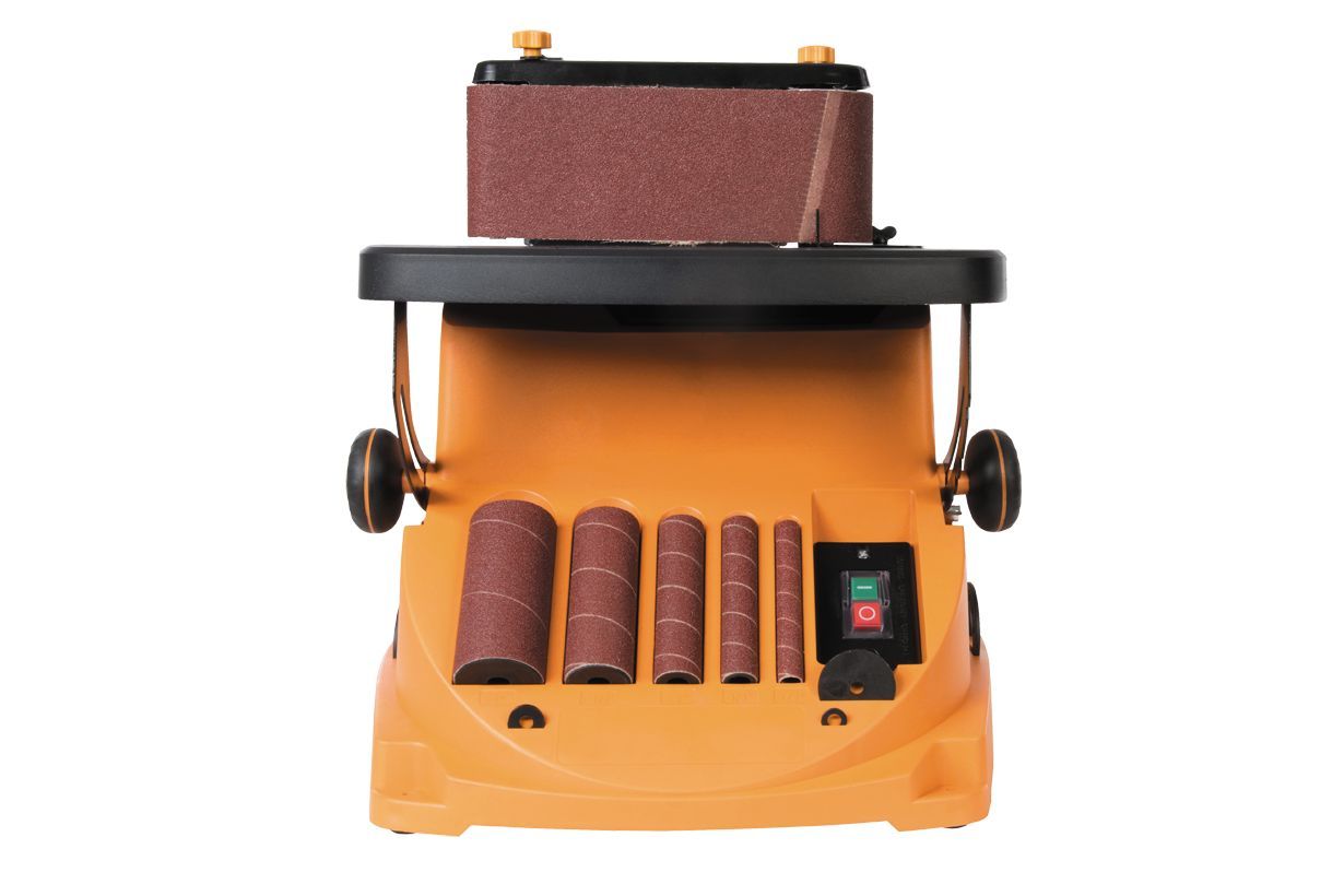 Осцилляционный шпиндельно-ленточный шлифовальный станок Triton TSPST450 используется для работы с кромками и торцами, шлифует непрямые края заготовок с вогнутым профилем. Рабочий стол состоит из двух секций, сделанных из литых алюминиевых отливок. Ленточный шлифовальный узел может применяется для заточки инструментов.