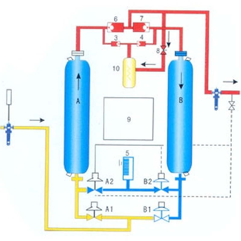 - Технология экономии подготовки воздуха. Автоматическая система управления регулирует цикличность работы колонн, время регенерации и осушения, а так же температуру нагрева