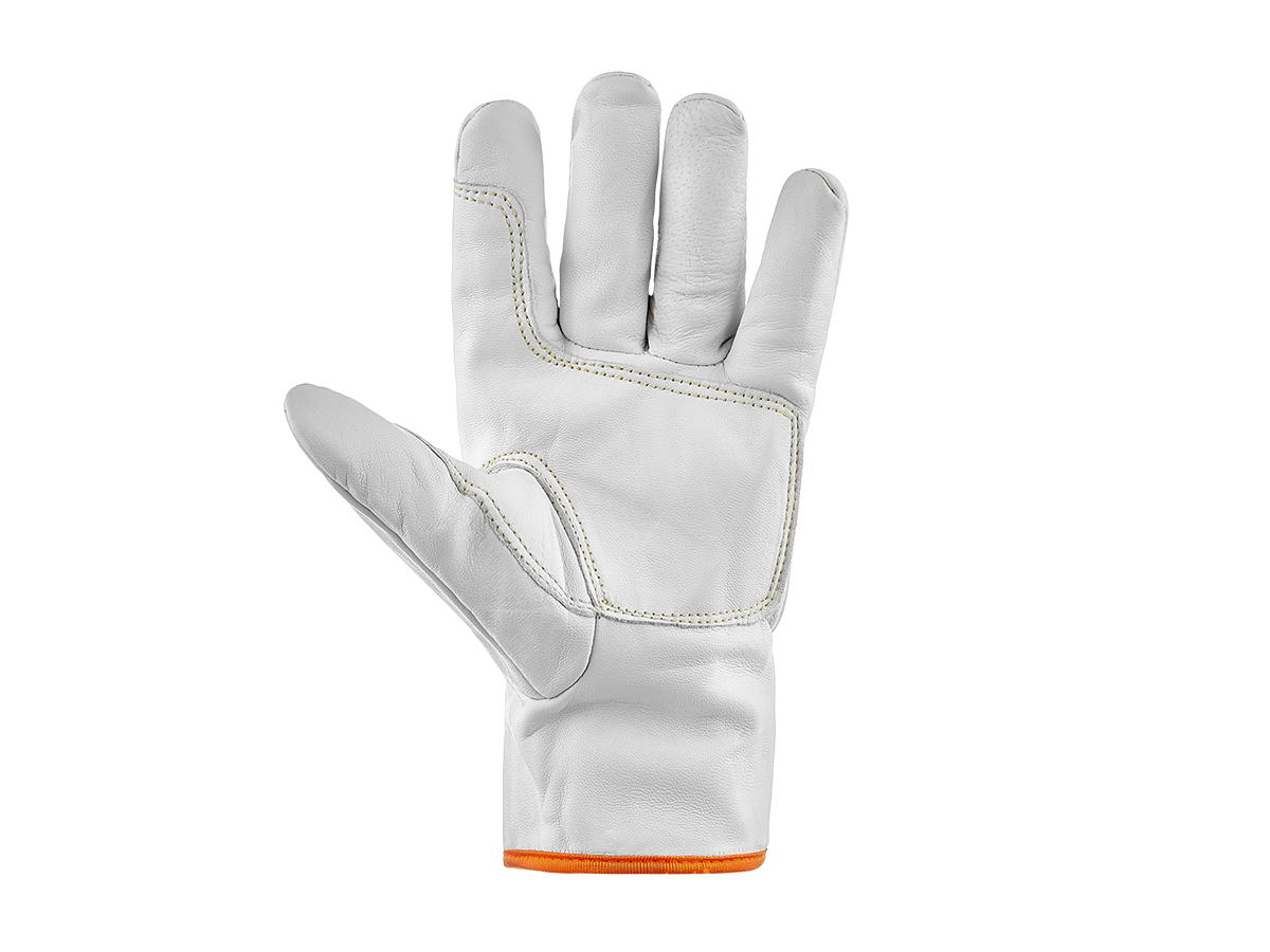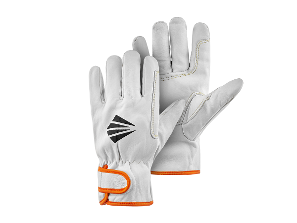Рабочие перчатки из натуральной кожи имеют фиксатор на манжете, что обеспечивает лучшую посадку на руке. Ладонь дополнительно укреплена износостойкой нашивкой. Сфера использования: для работ, связанных с высокими истирающими, механическими нагрузками.