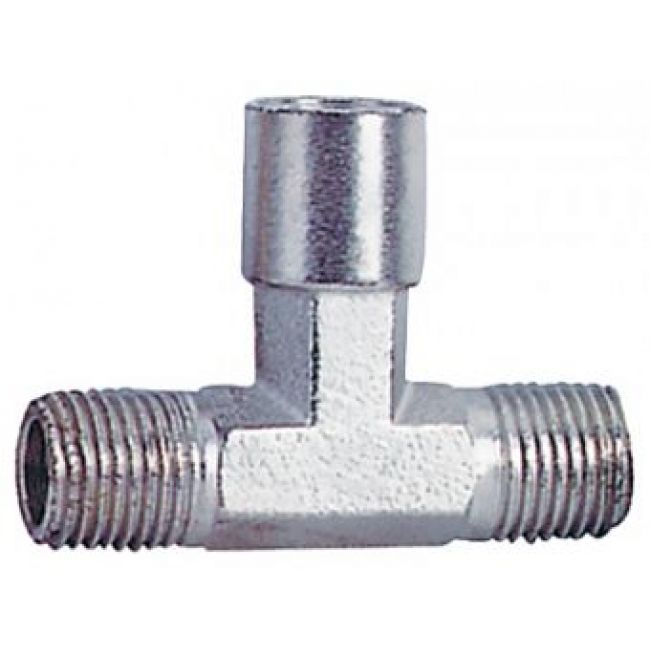 Переходник FUBAG T - 3/8"MFM для разветвления пневмомагистрали и для подсоединения к ней дополнительного участка системы. Крепление осуществляется с помощью резьбы 3/8".