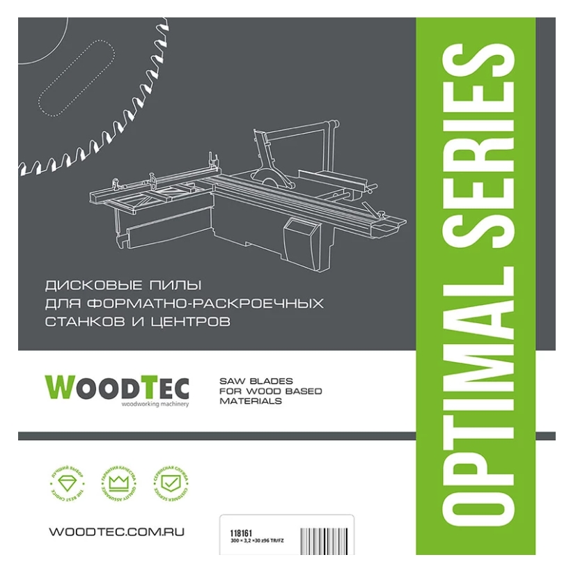 Пила алмазная подрезная Woodtec DP (120x3.1-4.2x2.2x22 Z24) H6 CON/FZ применяется для работы в паре с основной пилой на форматно-раскроечных станках и предотвращают сколы облицовочного материала.