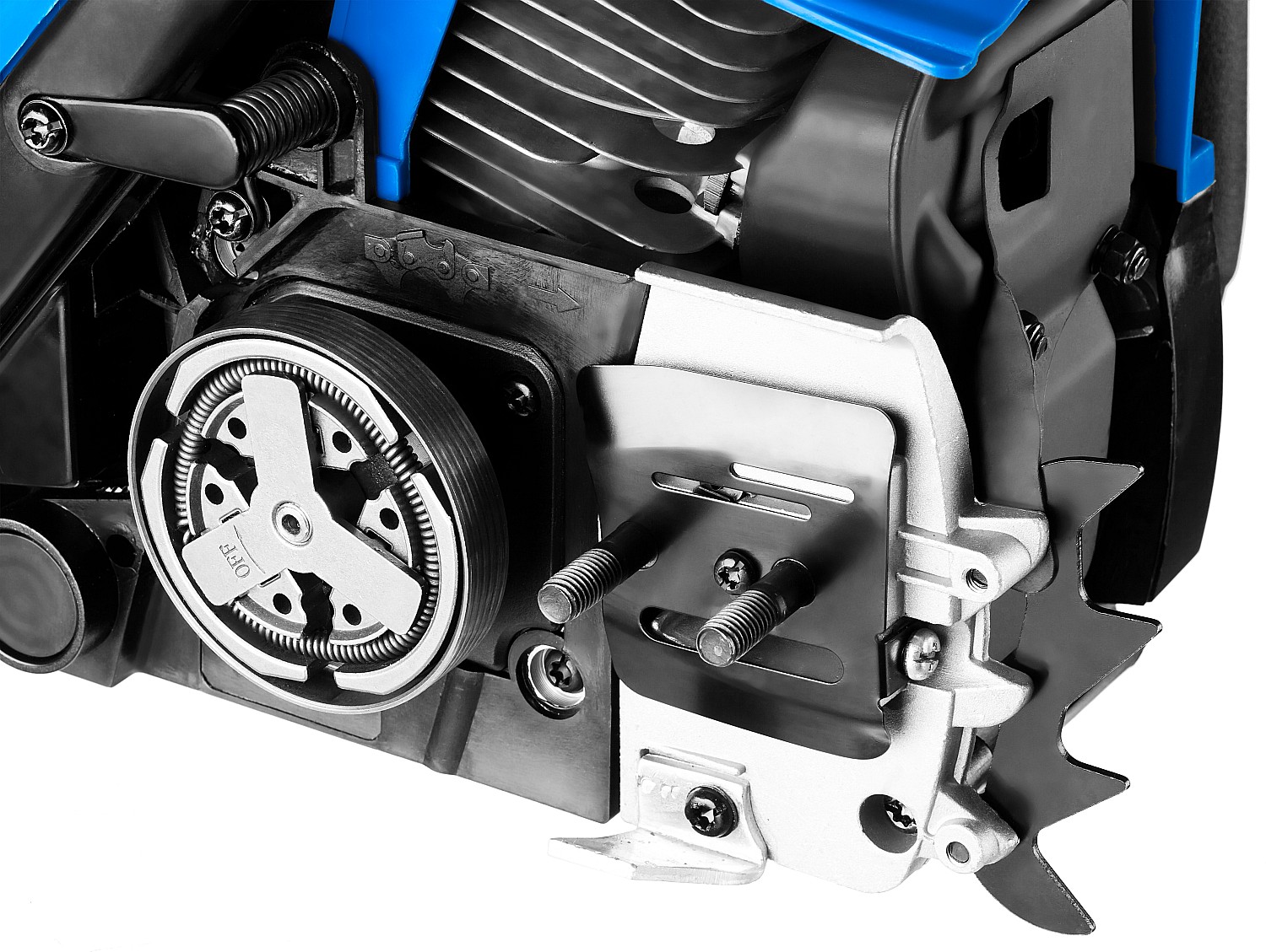 - Автоматическая система смазки цепи дозированно подает масло, в зависимости от нагрузки и отключает подачу масла на холостых оборотах