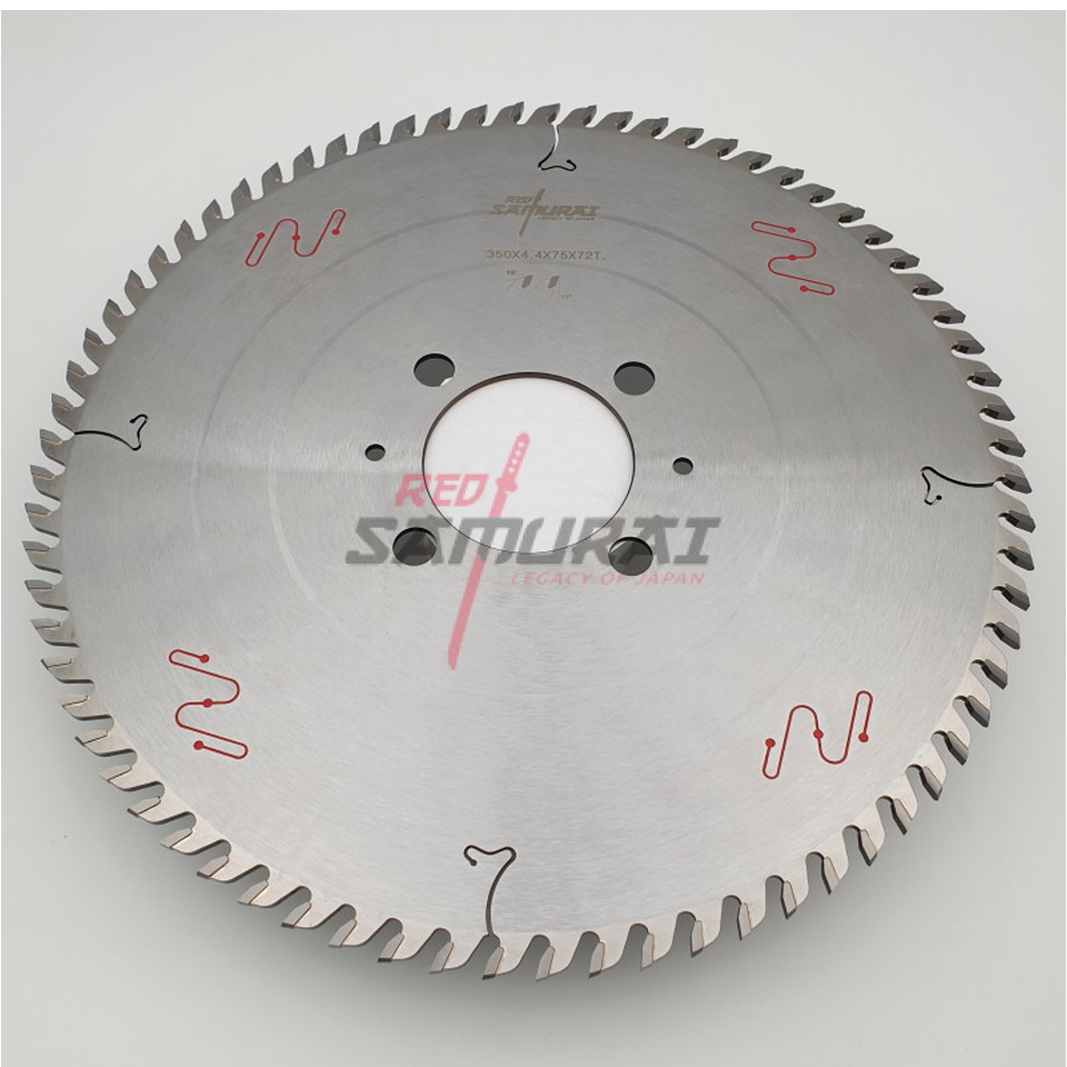 Пила дисковая 350x4,4-3,2x75 z72 RED SAMURAI для раскроечных центров используется для раскроя ламинированных панелей, ДСП, ЛДСП, МДФ без сколов.