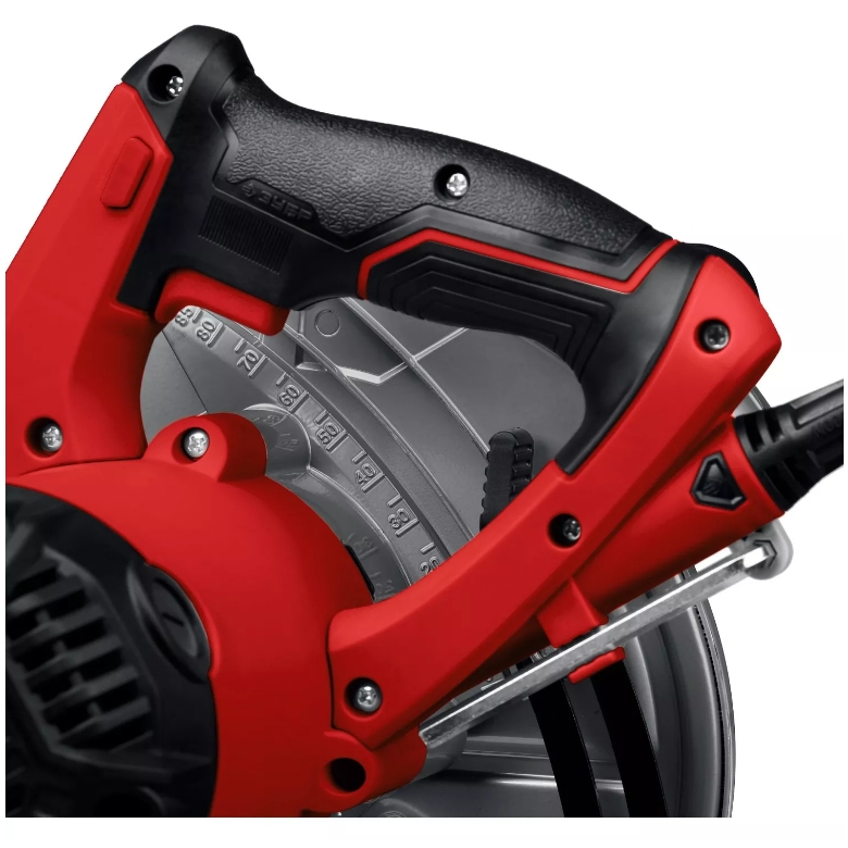- Бесступенчатая регулировка глубины и угла пиления для точных работ