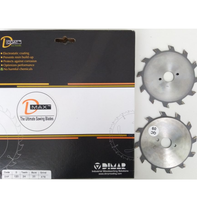 Пила подрезная сэндвич Dimar 95600104 D100x22x2,8-3,6 Z2x12 двойной ресурс. Инструмент для раскроя ламинированных панелей, ДСП, ЛДСП, МДФ без сколов. Симметричная профильная накатка для увеличения жесткости диска и компенсации деформаций при нагреве. Специальная форма зубьев DVF отлично подходит для качественного распила обрабатываемого материала.