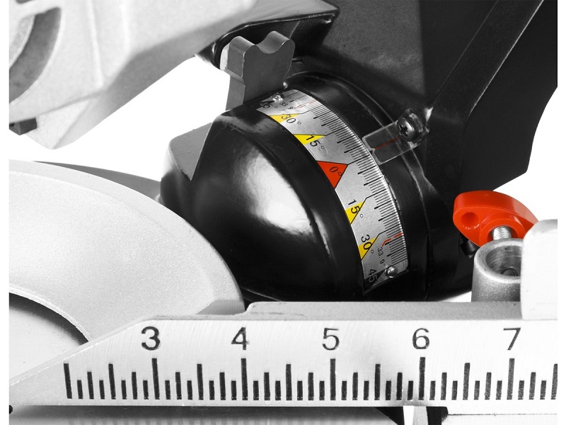 - Фиксирующийся в любом положении поворотный стол и удобная регулировка наклона облегчают установку угла пиления