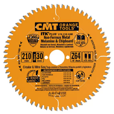 Пильный диск 216x2.2/1.6x30 Z64 TCG NEG -6° CMT для цветных металлов и ПВХ - используется для резки в тяжелых условиях, отлично подходит для тонкостенных материалов и хорошо подходит для толстостенных материалов. Оборудование: ручные дисковые, торцовочные, настольные и специальные пилы. Материал: алюминий, латунь, медь, ПВХ, цветные металлы и композитный материал.