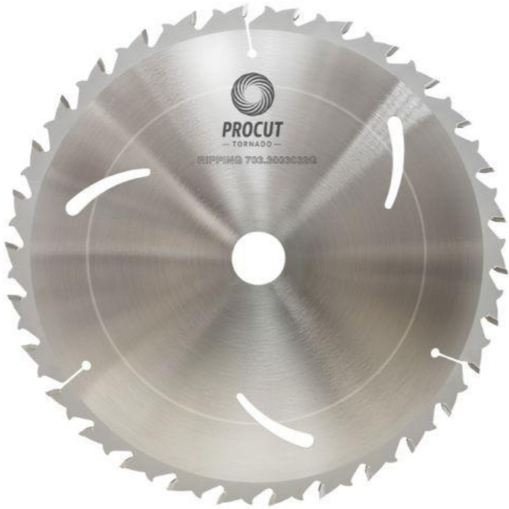 Пильный диск для продольного пиления по дереву, фанере 300x30x3.2/2.2 Z=32 TCG PROCUT 703.3003032G используется для пиления древесины любых пород и фанеры. Корпус диска и посадочное отверстие делается лазерной резкой, после на посадочном отверстии делается фаска, и оно дополнительно шлифуется; далее корпус проходит процедуры закалки. Поэтому все пильные индустриальные диски имеют масляные следы, и это самый верный признак качества. Далее идёт прокатывание, вальцовки и балансировка, а затем напайка зубьев, тщательная их заточка, затем пескоструйная обработка и лазерная гравировка.