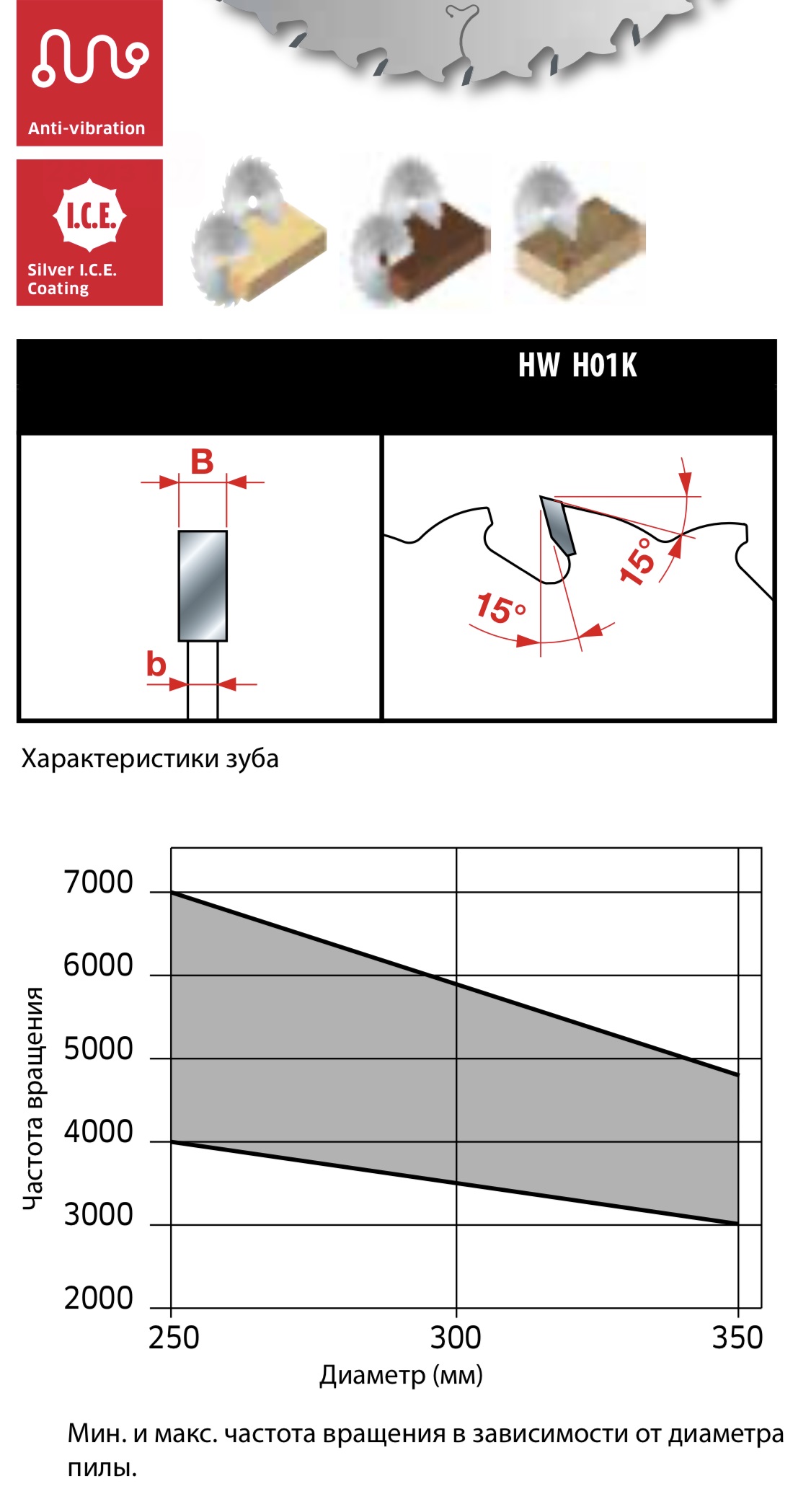 | Толщина пропила, B (мм) | 2.5 |
