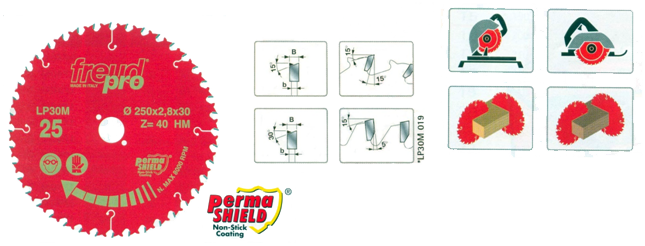Твердосплавная дисковая пила Freud LP30M 012 применяется для продольного и поперечного пиления массивной древесины. Пила имеет небольшое количество зубьев с наклоном в 15 градусов (положительный передний угол), подходит для переносных ручных станков, дисковых электропил.