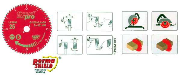 Твердосплавная дисковая пила Freud LP40M 014 применяется для поперечного пиления массивной древесины. Пила имеет небольшое количество зубьев с наклоном в 15 градусов (положительный передний угол), подходят для переносных ручных переносных станков, дисковых электропил.