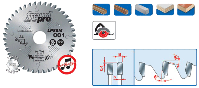 Твердосплавная дисковая пила LP85M 004 применяется для распила и раскроя панелей, облицованных с двух сторон, а также резки твердых тянутых изделий и труб. Пильный диск подходит для ручных переносных станков, с прямым трапециевидным зубом с отрицательным передним углом.