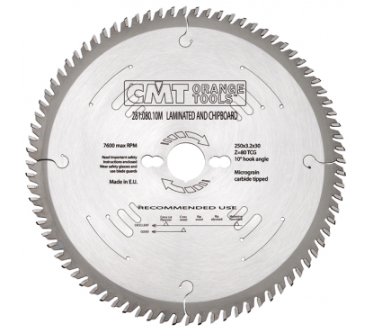 Пильный диск СМТ 250x30x3,2/2,2 10є TCG Z=60 для ДСП, ЛДСП, МДФ, ламината, фанеры