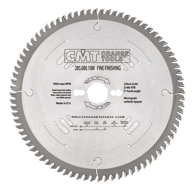 Пильный диск СМТ 250x30x3,2/2,2 5° 15° ATB Z=80 для мягкой, твёрдой, экзотической древесины, фанеры, OSB, ДСП
