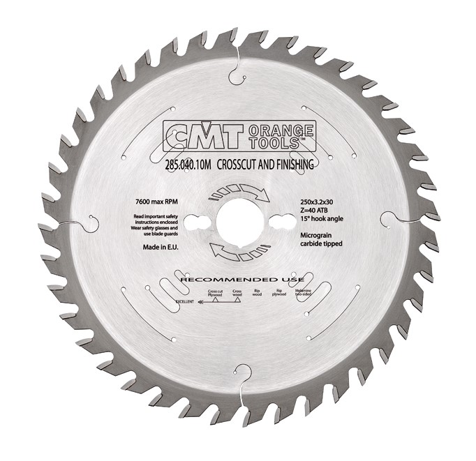 Твёрдосплавная пила CMT 294.054.12M косой заточки (ATB) – используются для пиления твердых и мягких пород древесины, клеёной фанеры, МДФ, ДСП и OSB. Дисковая пила делает ровные и чистые края обрабатываемой поверхности. Подходит для чистового продольного распила, а также хорошего поперечного распила.