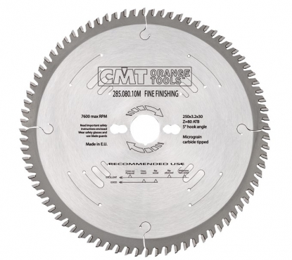 Твёрдосплавная пила CMT 285.108.14M косой заточки (ATB) – используются для пиления твердых и мягких пород древесины, экзотической древесины, фанеры, OSB, ДСП. Дисковая пила делает ровные и чистые края обрабатываемой поверхности. Подходит для чистового продольного распила, а также хорошего поперечного распила.