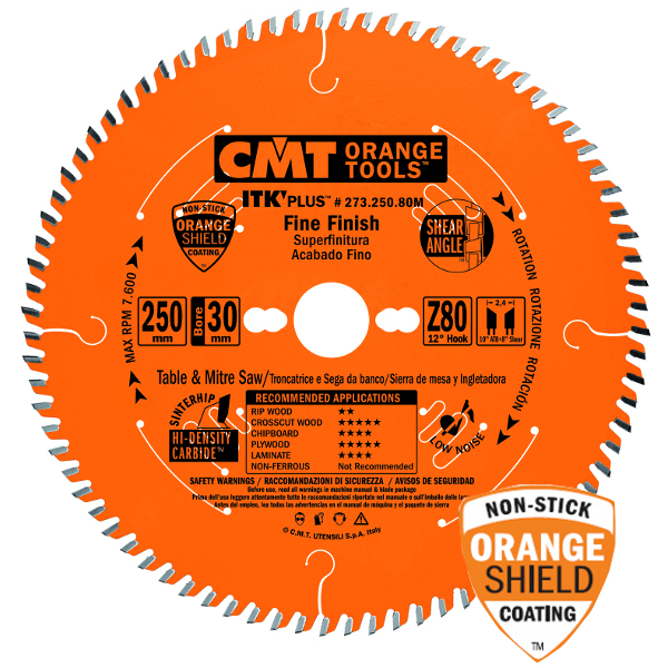 Пильный тонкий диск СМТ 250x30x2,4/1,6 12° 10° ATB + 8° SHEAR Z=80 для ламината, фанеры