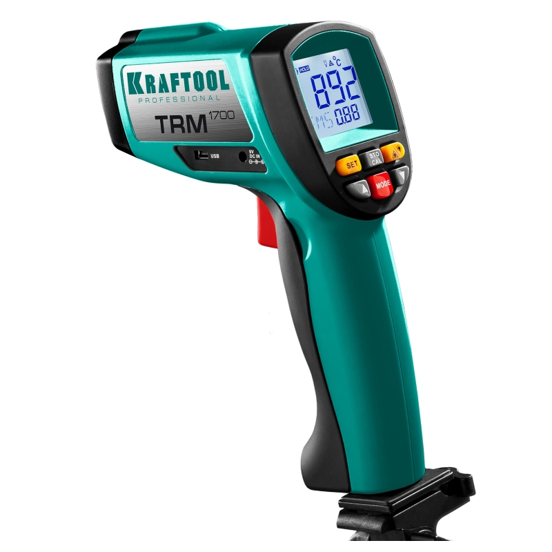 Пирометр инфракрасный KRAFTOOL 45701-1650 предназначен для измерения температуры поверхности бесконтактным способом.