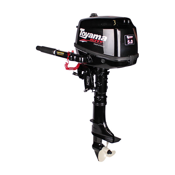 Toyama F5 BMS — это четырехтактный подвесной мотор мощностью 5 л.с. В отличие от двухтактных моделей, данный двигатель имеет газораспределительный механизм с клапанами и систему смазки с картером (масло заливается отдельно от бензина).