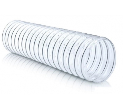 Прозрачный спиральный воздуховод с высокой абразивостойкостью PU-H-25 диаметром 60 мм., толщиной 2,5 мм, изготовлен на основе высокоуглеродистой оцинкованной стальной проволоки. Вытяжной воздуховод применяется для высоко-абразивных материалов, в том числе гравий, щебень, гранулы, песок, зерно, крупы, мука, сахар. Транспортировочный шланг-воздуховод используется в пищевой, химической промышленности, деревообработки, очистных систем, удаляет сильные абразивные материалы с высокой плотностью потока. Полиуретановый рукав армированный спиралью в сравнении с ПВХ воздуховодами - срок службы увеличен в 4-5 раз. Шланг-воздуховод из усиленного полиуретана отличается, легкостью, высокой гибкостью и эластичностью, при заземлении стальной спирали не накапливает статического электричества.