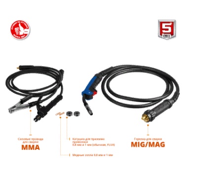 - меньшее количество силовых элементов (при той же мощности) и, соответственно, выше надежность и меньше вес и размеры по сравнению с технологией MOSFET - Универсальный сварочный полуавтомат инверторного типа предназначен для работы в режимах MIG/MAG-сварки и ММА-сварки,
