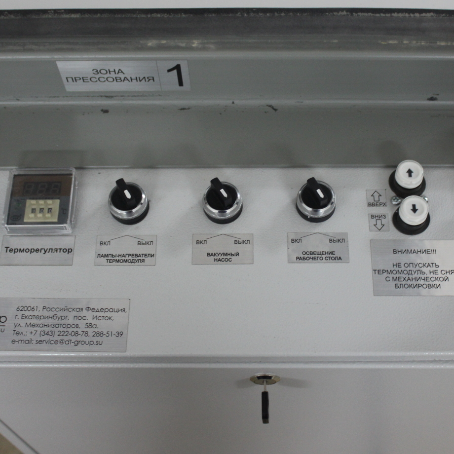 - Компактность - вертикальный подъем термомодуля позволяет существенно экономить пространство, занимаемое прессом.