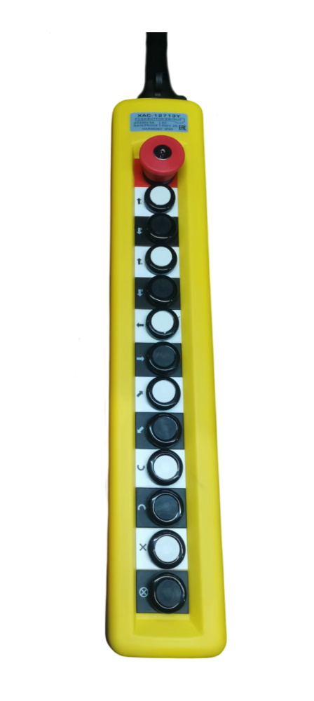 Пульт управления XAC-A12713Y для тали (12 кнопок, 1 скорость, ключ-марка, стоп, IP65, 380В)