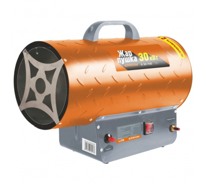 Пушка тепловая газовая Кратон Жар-пушка G 30-700 используется для обогрева производственных, жилых и нежилых помещений и для просушивания поверхностей и предметов. Работает на сжиженном газе, который зажигается при помощи пьезоподжина.