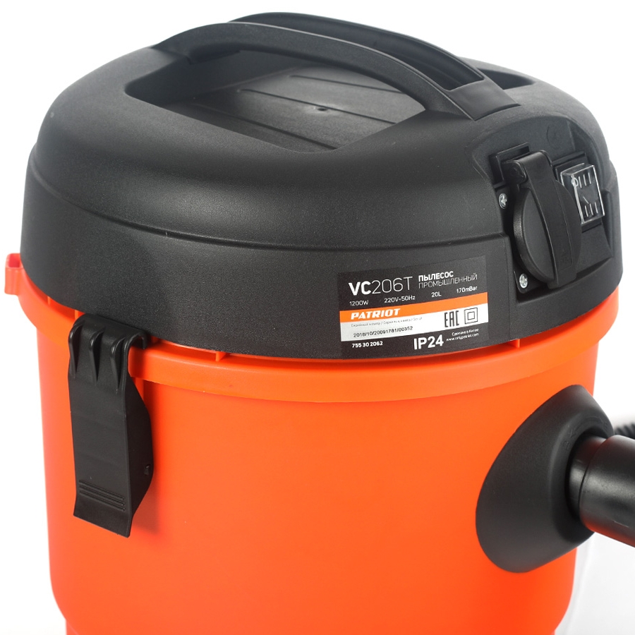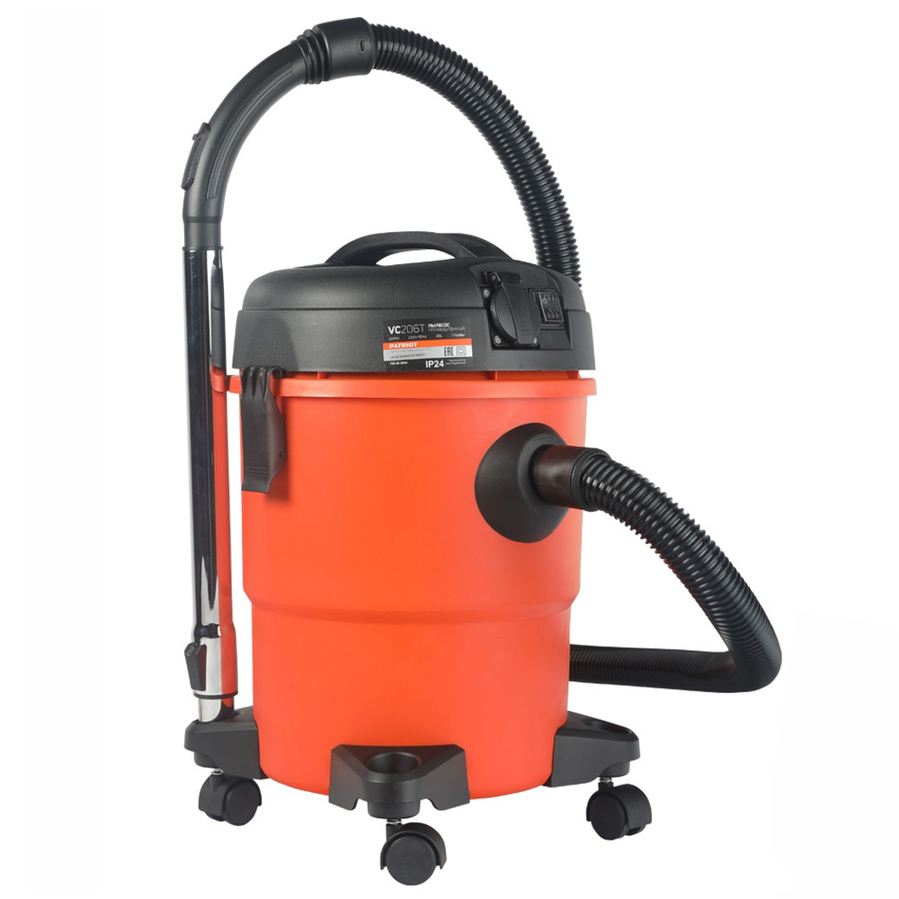 Пылесос промышленный PATRIOT VC 206T используется для сбора стружки, строительного мусора и жидкостей. На корпусе аппарата встроена розетка для подключения электроинструмента.