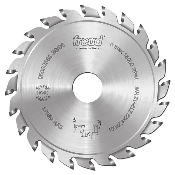 Твердосплавная регулируемая подрезная пила Freud LI16M GA3 - используется для подрезания покрытия на биламминированных панелях, ДСП, ЛДСП, МДФ без сколов. Диск устанавливают в паре с основным пильным диском на горизонтально форматно раскроечных станках без регулировки глубины подрезания, максимальная глубина подрезания 2 мм.
