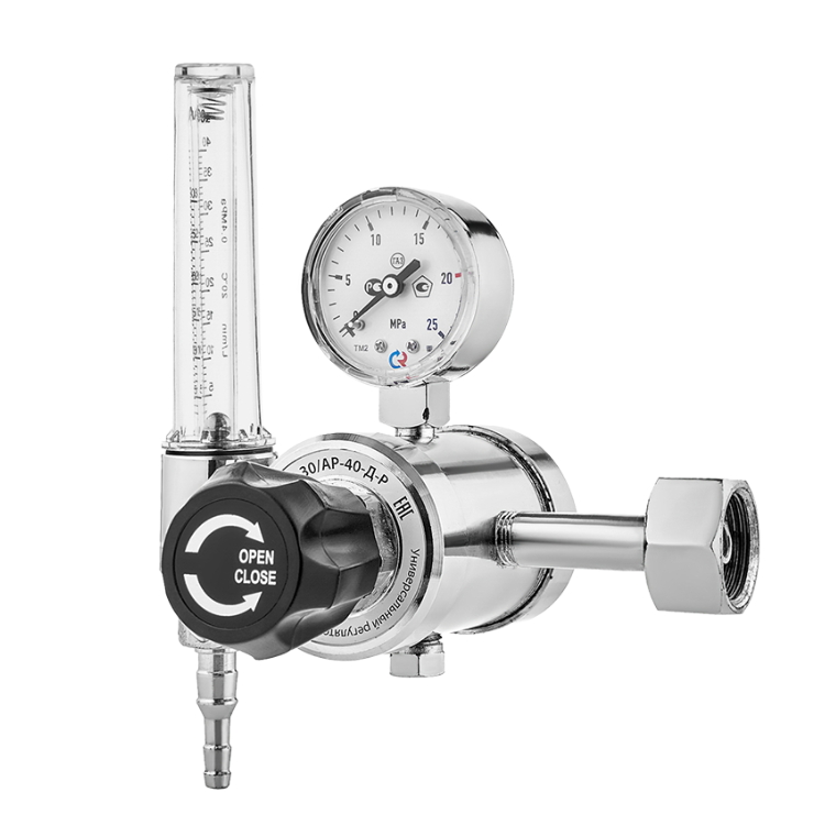Регулятор расхода газа универсальный Сварог У-30/АР-40-Д-Р (манометр+1 расходомер, двухступенчатый), манометр с поверкой предназначен для поддержания скорости подачи вещества на заданном уровне вне зависимости от температуры и давления внутри баллона.