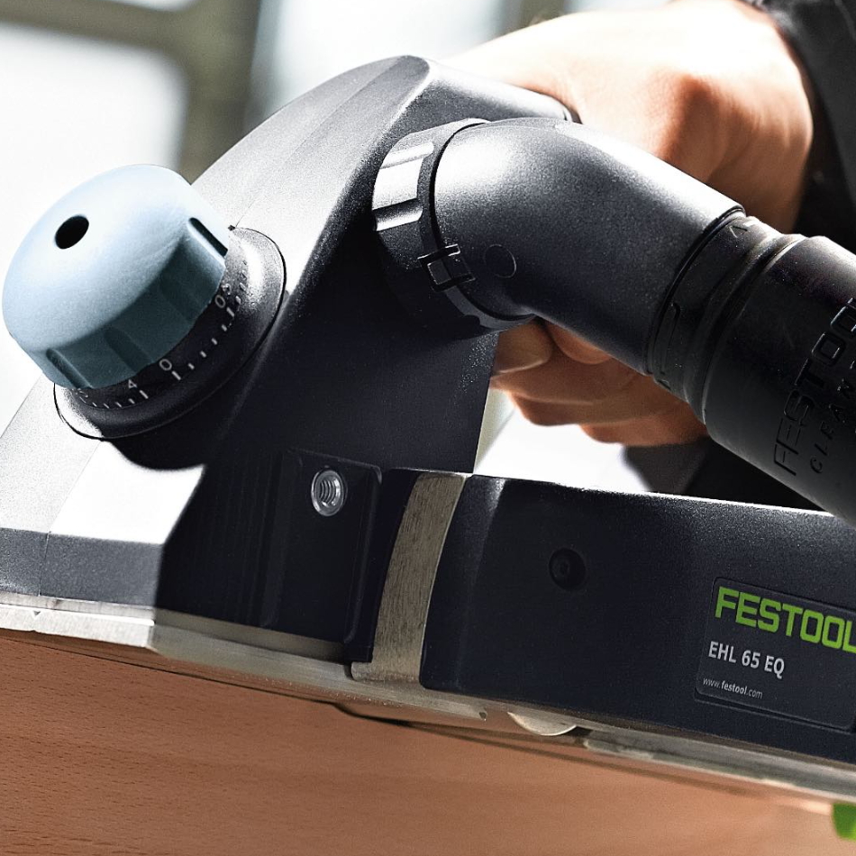 Рубанок электрический FESTOOL EHL 65 EQ-Plus используется для качественного строгания без ряби за счёт поперечной установки спирального ножа и тянущего реза.