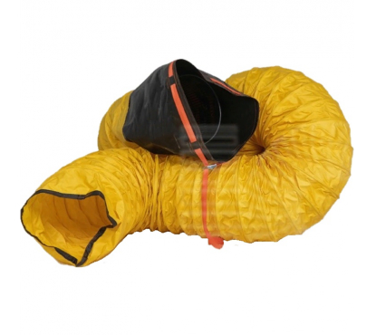 Рукав ТП V диаметром 350 миллиметров, длиной 3м с манжетой диаметром в начале 380мм – используется на тепловых установках НЕ ПРЯМОГО НАГРЕВА для подачи или удаления горячего воздуха на строительных площадках, в цехах, складских комплексах, аэропортах, судах и различных других местах где нужно осушить или нагреть воздух. Рукав одевается на любую тепловую пушку, к примеру: Ballu, Master, Jumbo, Тепломаш и многих других, а также на теплогенераторы. Рукав изготовлены из специального высокотемпературного материала, обеспечивающего быструю и эффективную подачу или удаление горячего воздуха. Воздуховоды имеют термостойкую манжету и ремень для крепления на патрубке.