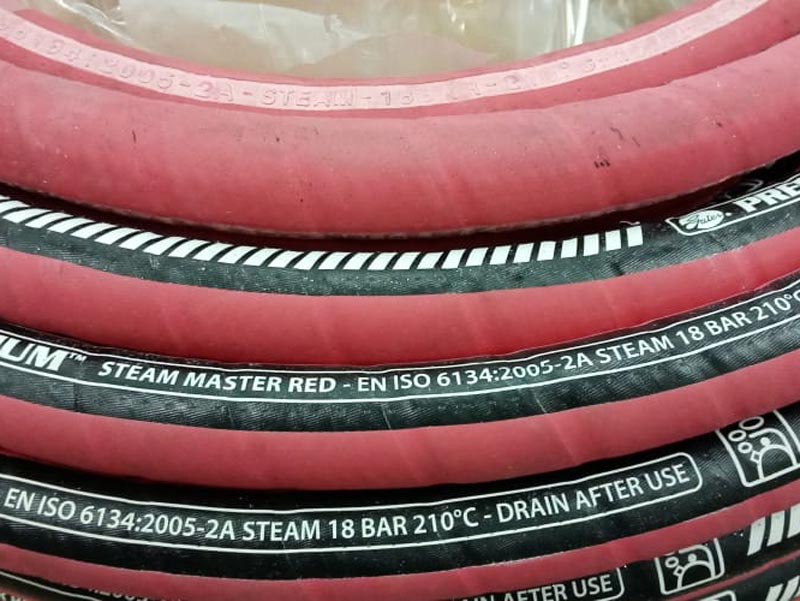 Напорный красный шланг GATES PREMIUM™ STEAM MASTER RED - EN ISO 6134:2005-2A STEAM 18 BAR - DIAM mm – Q – year диаметром 38 миллиметров - применяется для подачи сжатого насыщенного пара при температуре 210°C и максимальном давлении 18 Бар или горячей воды под давлением.