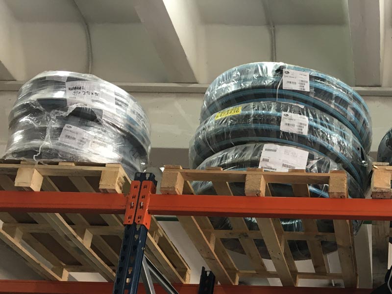 - Оболочка рукава - EPDM, черная, гладкий с одной синей линией по всей длине рукава.