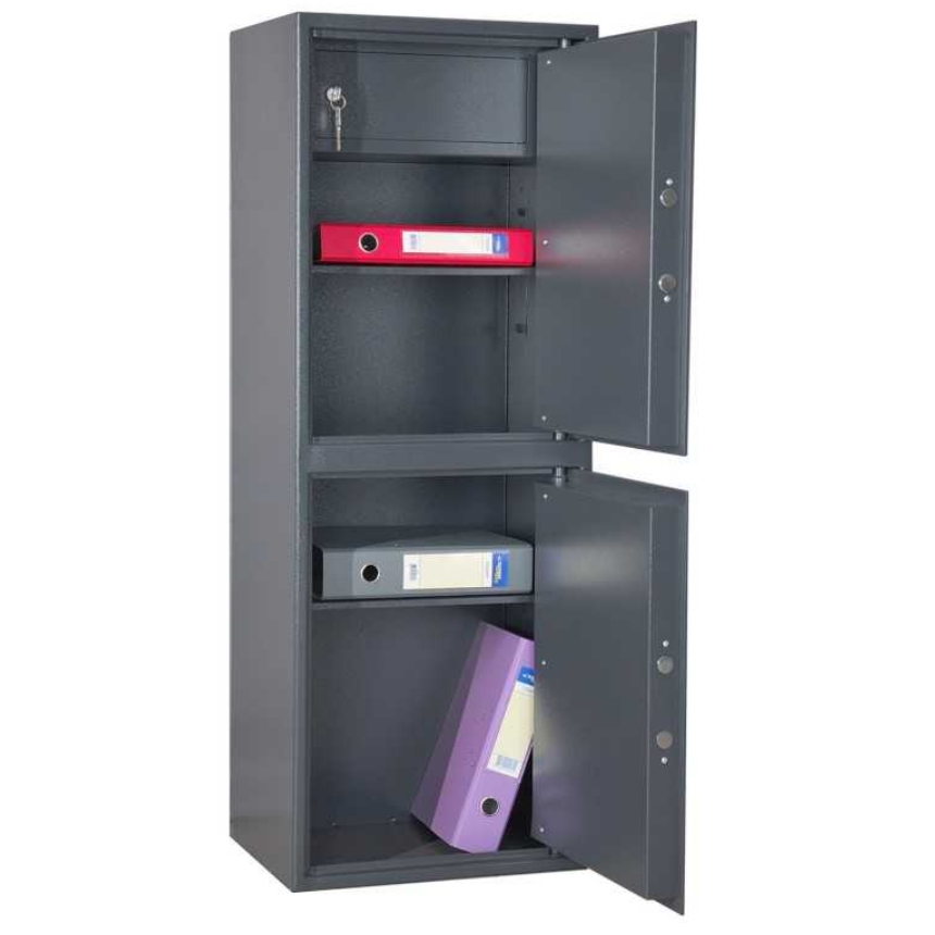 Сейф офисный МетКон ШБМ-120/2МК предназначен для хранения бумажных документов. В двери установлен ключевой сувальдный замок с ригельной системой запирания класса А и блокирующий замок.