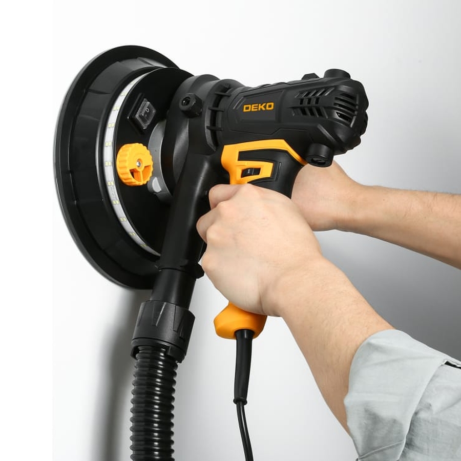 Шлифмашина эксцентриковая сетевая DEKO DKG900 - это электроинструмент, предназначенный для шлифовки больших поверхностей из древесины, пластмассы и металлических материалов, а также окрашенных поверхностей. Она оснащена вращающейся платформой, на которой установлен абразивный круг. Шлифмашина оснащена LED подсветкой, что делает работу еще более удобной. Её также можно использовать для шлифовки полов. Благодаря кожуху со съемным сегментом можно шлифовать вплотную к кромкам пола, стен и потолков. Эргономичная конструкция и регулируемая дополнительная рукоятка способствуют комфортному рабочему процессу.