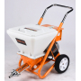 Шпатлевочная установка ASPRO N4 -используется для нанесения всех видов шпатлевки методом пневматического распыления (набрызга). Шнековый насос приводится в действие электродвигателем. Материал из бункера подается шнековым насосом в растворный ствол или пистолет (в зависимости от комплектации). Сжатый воздух поступает от компрессора, установленного на раме агрегата в пистолет (растворный ствол). Распыление материала происходит пневматическим методом, т.е. раствор, подаваемый насосом, смешивается с жатым воздухом и "растворо-воздушная" смесь распыляется на поверхность. Величина капель смеси регулируется количеством сжатого воздуха и количеством раствора. Регулировка оборотов привода насоса осуществляется потенциометром на блоке управления. Величина капель смеси регулируется количеством сжатого воздуха и количеством раствора. Несмотря на то, что величина твердой фракции, перекачиваемой насосом достигает 2 мм, производитель рекомендует использовать установку для нанесения именно шпатлевочных составов. Установлена на тележку с колесами и ручками для удобства транспортировки. Комплектуется растворным стволом или текстурным распылителем по желанию.