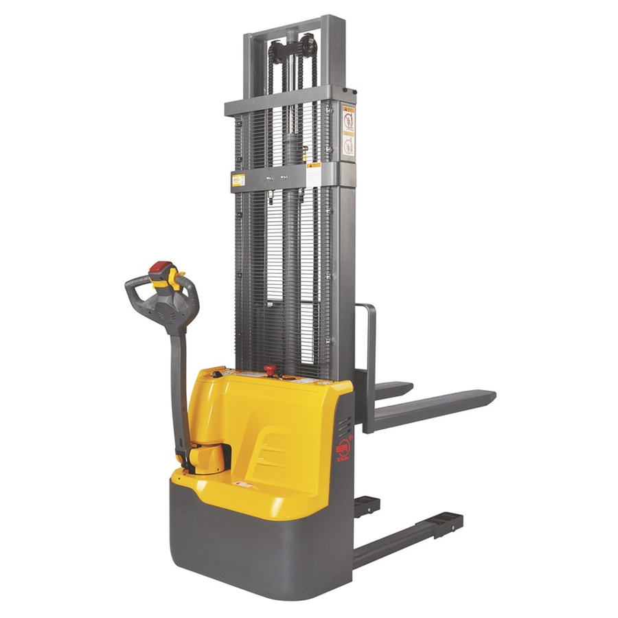 Штабелер самоходный 1,0 т 1,6 м XILIN CDD10R-E сопровождаемый оснащен электродвигателями хода и подъёма вил, предназначен для поднятия, опускания и перемещения грузов, используется на складах и на промышленных производствах.