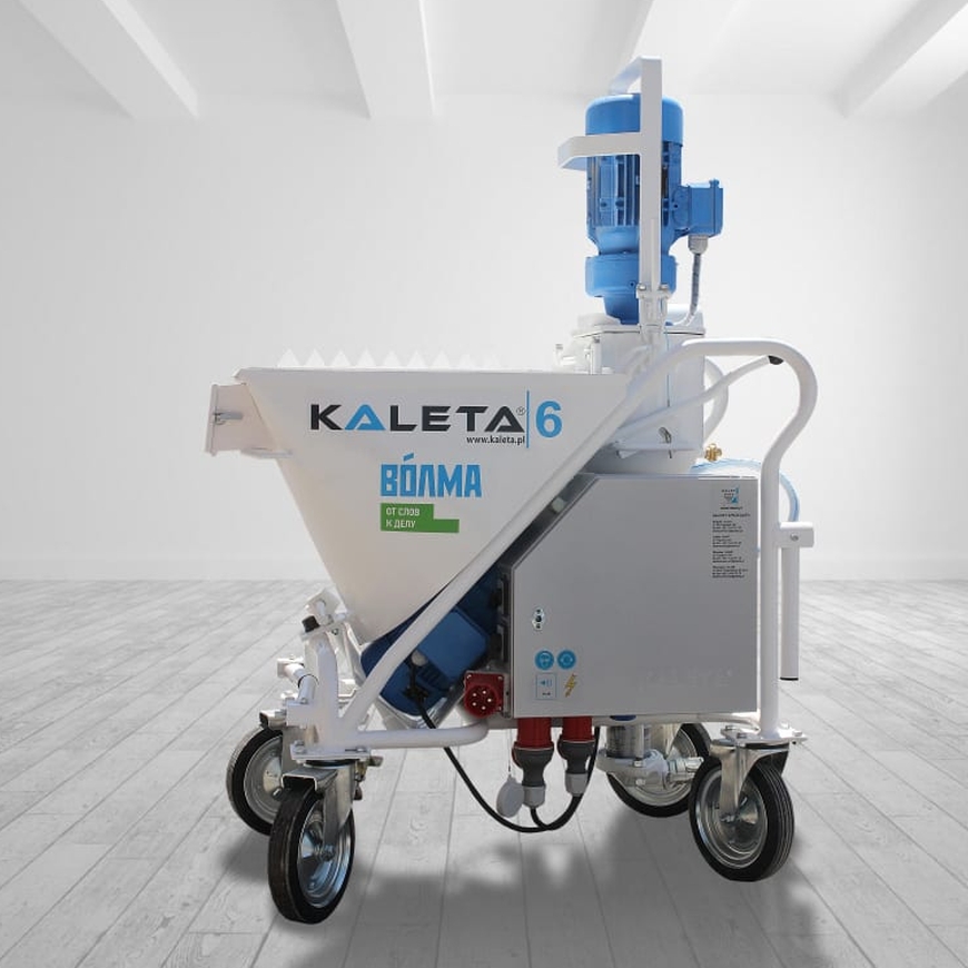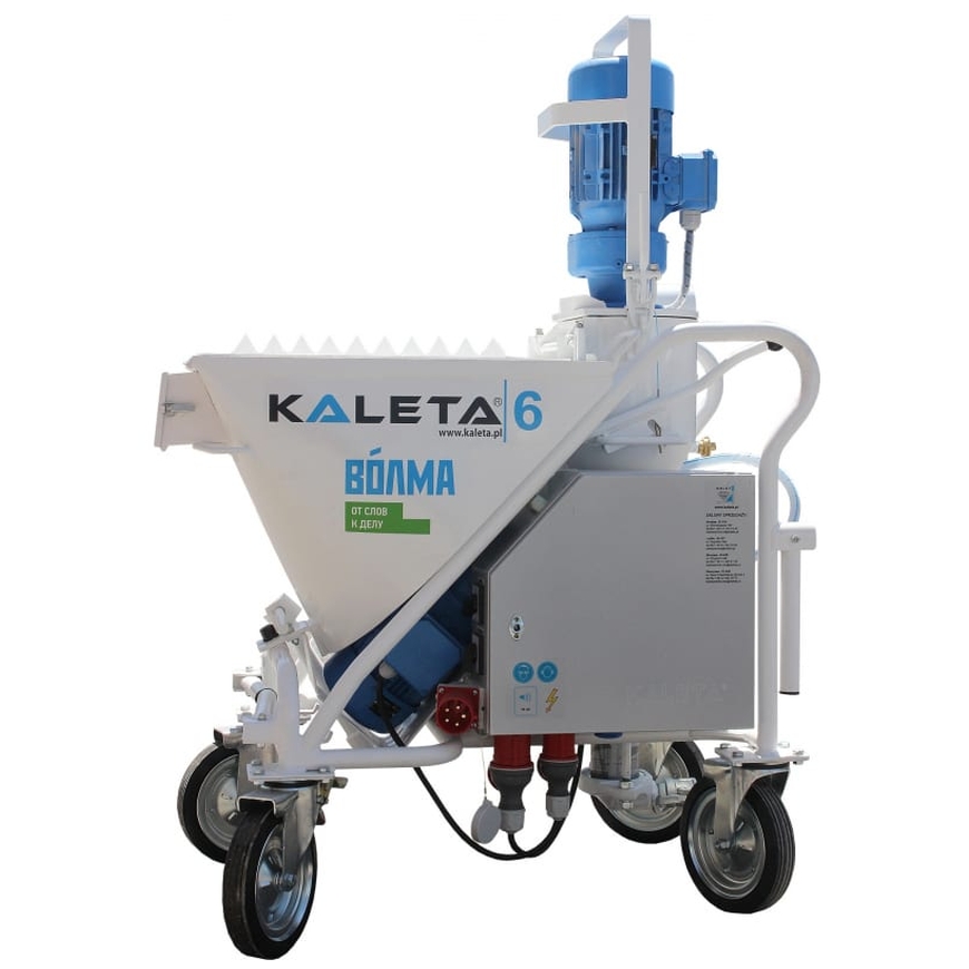 Штукатурная станция Kaleta-6 используется для механического нанесения штукатурки непрерывным способом, используя готовые сухие строительные смеси. Агрегат заполняют смесью в мешках, а также через подающее устройство (силомат) из бункера. Модель отличается надежным приводом подачи сухой смеси.