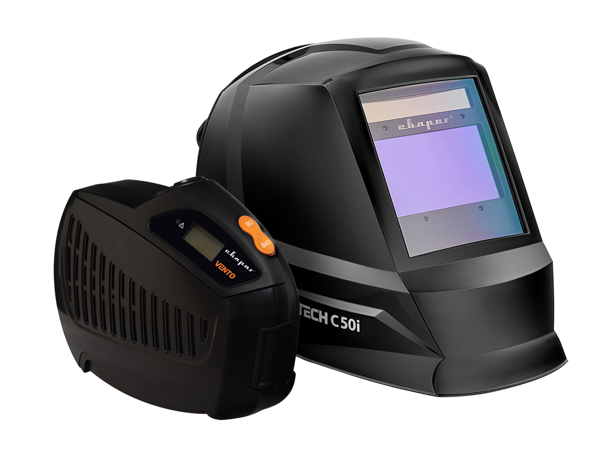СВАРОЧНЫЙ ЩИТОК TECH C50I С УСТРОЙСТВОМ ПОДАЧИ ВОЗДУХА VENTO обеспечивает качественную очистку воздуха благодаря мощному фильтрующему блоку VENTO.