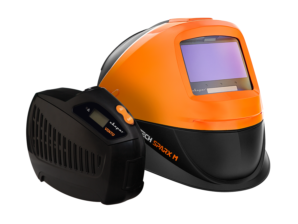 СВАРОЧНЫЙ ЩИТОК TECH SPARX M С УСТРОЙСТВОМ ПОДАЧИ ВОЗДУХА VENTO обеспечивает качественную очистку воздуха благодаря мощному фильтрующему блоку VENTO.