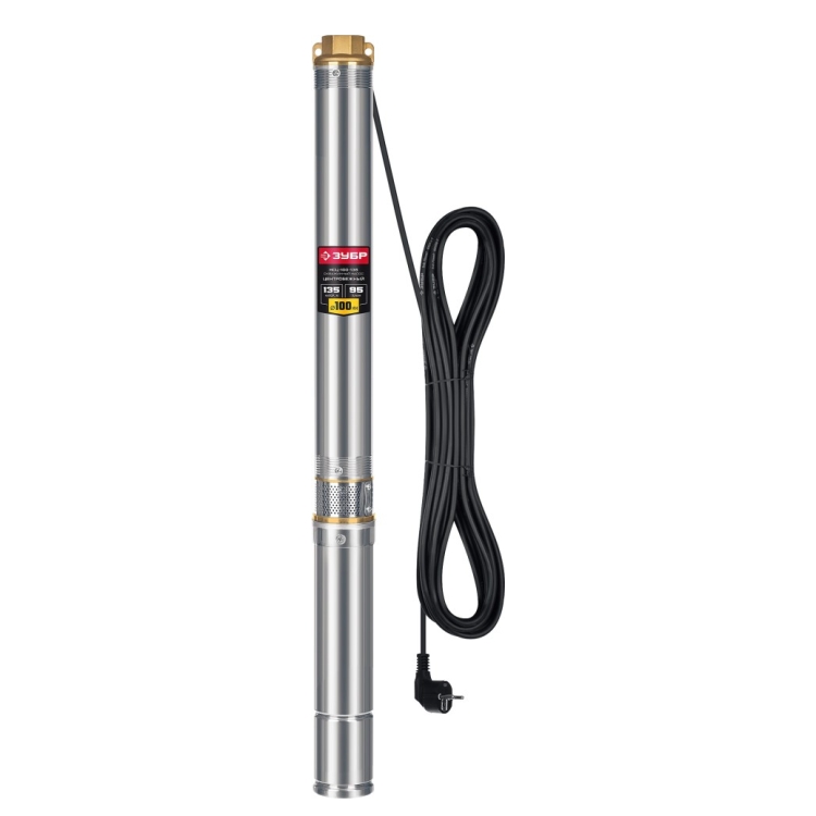 Скважинный центробежный насос Зубр НСЦ-100-135 предназначен для подачи чистой воды из скважин, водоемов, колодцев в жилые помещения и организации полива в саду и огороде.