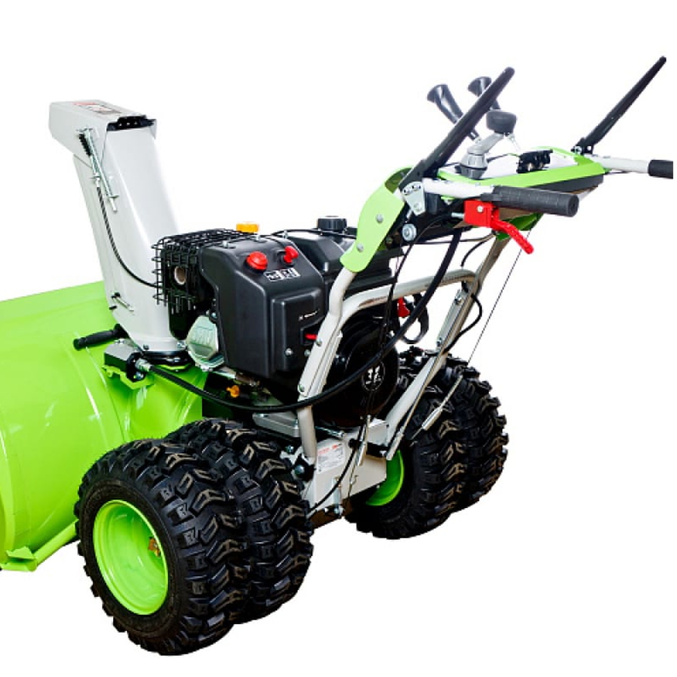 - Беспрепятственный и дальний выброс снега на расстояние до 15 метров