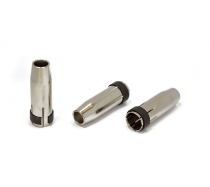 Сопло газораспределительное AUROR MIG d.12.5 расходная часть горелки, которая отвечает за формирование струи защитного газа в процессе полуавтоматической сварки. В процессе работы сварочные брызги налипают на сопло, а продолжительные работы на максимальных токах выжигают сопло изнутри. Поэтому деталь приходится периодически менять. Для того, чтобы продлить жизнь расходнику сопло необходимо время от времени зачищать.